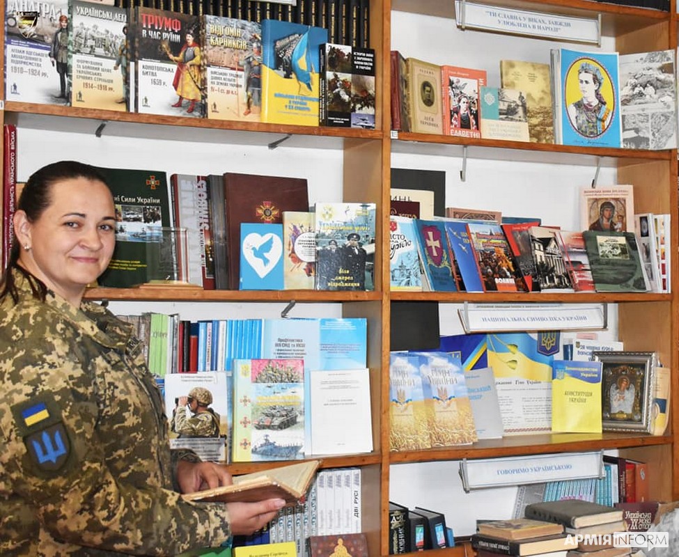 Сама старший солдат на сході держави бувала під час ротації бригади на Луганщині. Там вона більше займалася не бібліотечною роботою, а виконувала завдання з морально-психологічного забезпечення бойової підготовки та повсякденної життєдіяльності бригади. Але й книги, звісно, завжди були поруч, а як без них?!