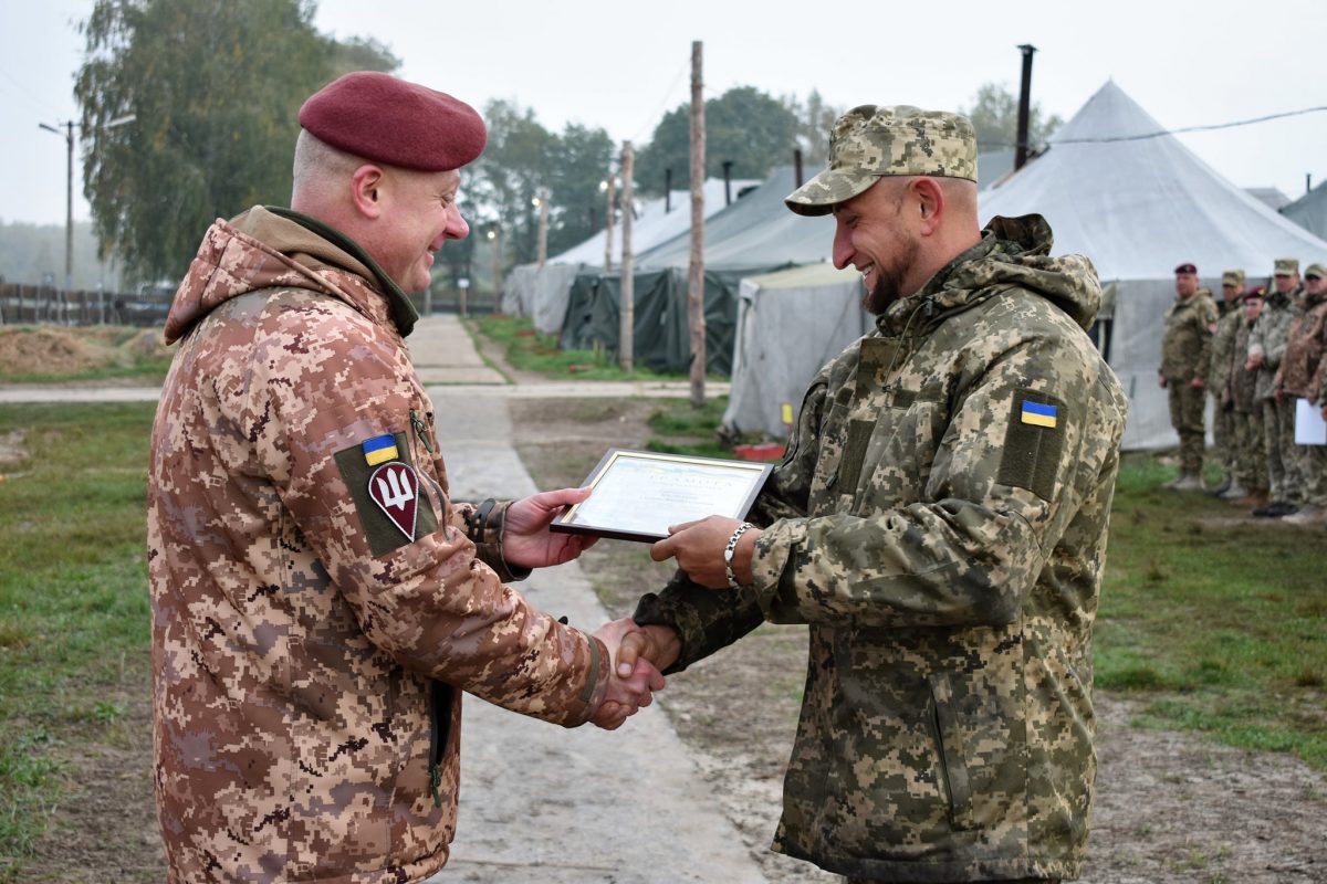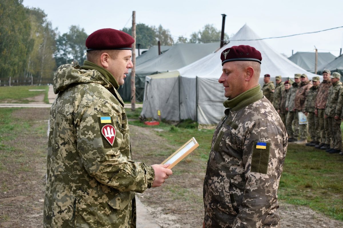 Під час урочистого заходу, присвяченого завершенню навчального збору, начальник Управління морально-психологічного забезпечення Командування Десантно-штурмових військ Збройних Сил України полковник Олександр Пухальський від імені командувача Десантно-штурмових військ ЗС України бригадного генерала Максима Миргородського вручив найкращим резервістам грамоти та цінні подарунки.