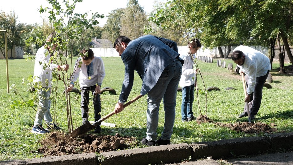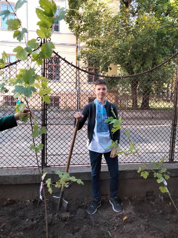 А біля місцевої школи №16 калинові кущі висаджували в знак пам’яті про військових, які загинули на Сході, школярі разом із двома запрошеними ветеранами АТО. Долучилися до акції озеленення й батьки учнів. За словами директора школи Сергія Білоуса, у школі навчається понад 20 дітей, батьки яких є ветеранами АТО та ООС. Частина з них і зараз перебуває на Сході. Отож, школа долучилась до міської акції з вшанування пам’яті загиблих військових.