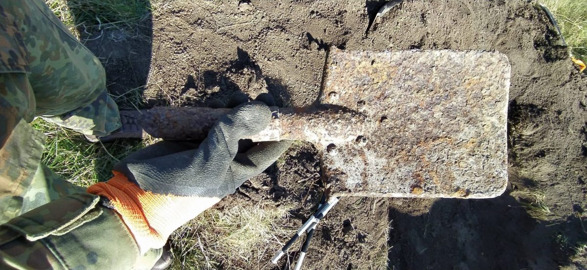 За його словами, загиблий лежав на схилі пагорба на глибині близько 50 см. При собі мав саперну лопатку, протигаз, пенал із засобами для чищення зброї, флягу, ніж, на руці був закріплений компас. Також пошуковці знайшли закриту мильницю зі складеною в ній газетою. Пошуковці сподіваються на те, що, можливо, там є документи, листи чи інші папери, за якими вдасться визначити ім’я загиблого захисника, адже медальйона боєць при собі не мав. Утім, щодо медальйонів у загиблих у цей період у даному районі пошуковці вже давно ілюзій не мають. На жаль, практично всі смертні медальйони, які були тут знайдені, зразка 1925 року — типу «ладанка», які негерметичні, тож записки в них не зберігаються.