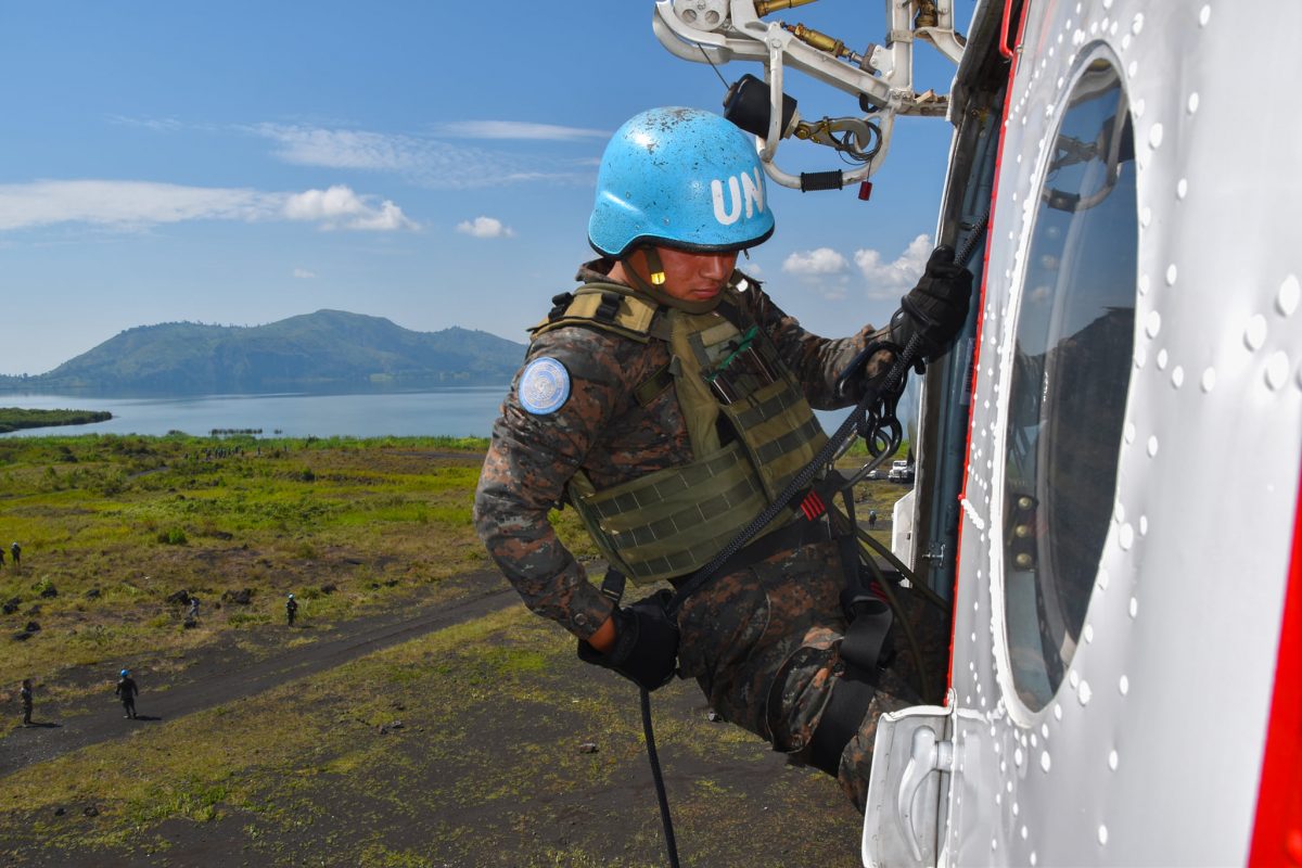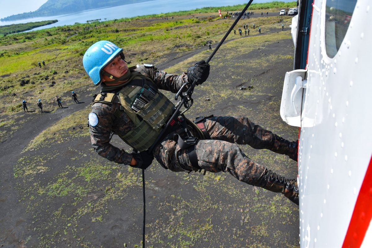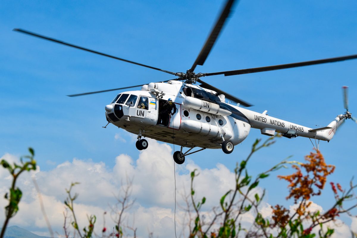 Українські миротворці, спільно з підрозділом спеціальних операцій збройних сил Гватемали, відпрацювали десантування особового складу в важкодоступній місцевості. Про це повідомляється на сторінці 18-го окремого вертолітного загону ДР Конго.