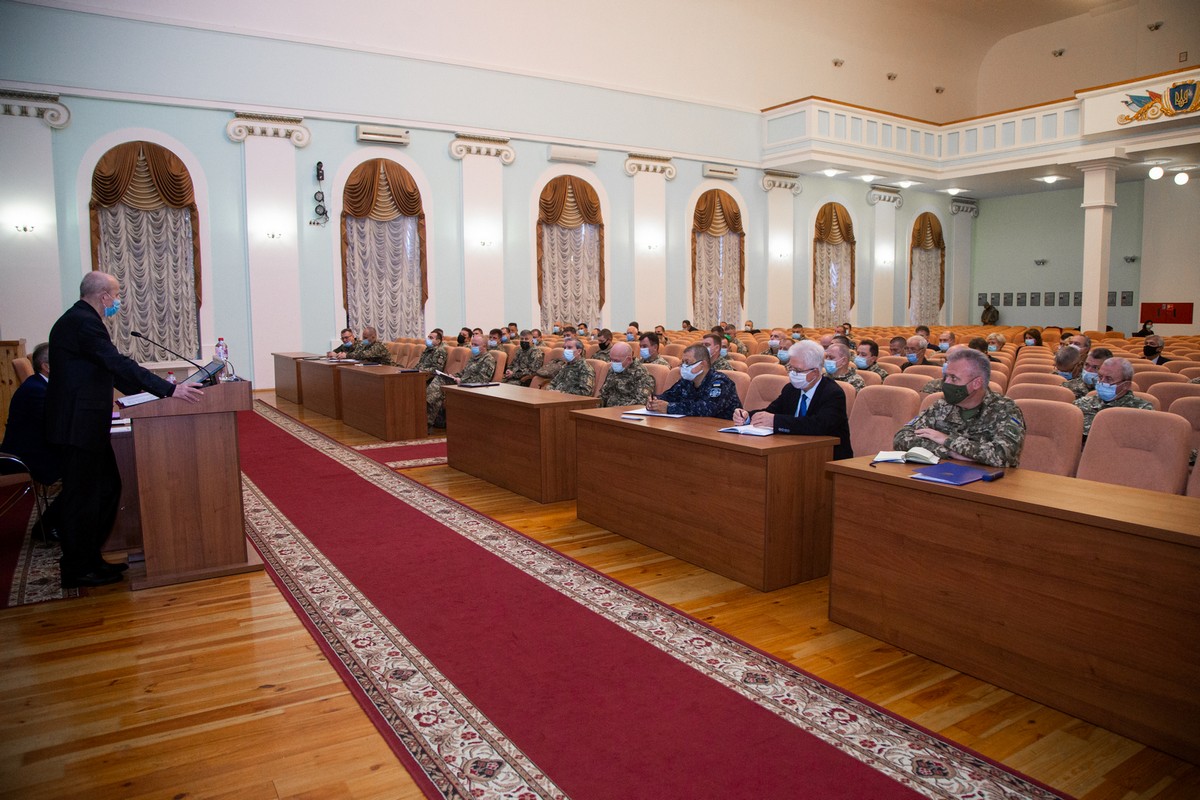 Директор Департаменту військової освіти і науки МО України Володимир Мірненко акцентував увагу присутніх на проблемних аспектах трансформації військової освіти, зокрема в контексті поєднання із системою управління людськими ресурсами. Водночас запропоновано варіанти вирішення проблемних питань шляхом удосконалення освітніх програм, виконання вимог Порядку атестації здобувачів ступеня фахової передвищої освіти та ступенів вищої освіти на першому (бакалаврському) та другому (магістерському) рівнях у формі єдиного державного кваліфікаційного іспиту, внесення змін до Інструкції стосовно укладання контрактів на проходження військової служби (навчання) на посадах курсантів та осіб офіцерського складу, нарощування спроможностей мовної підготовки відповідно до вимог Дорожньої карти удосконалення мовної підготовки у Збройних Силах України, реалізації принципу «Освіта впродовж військової кар’єри».