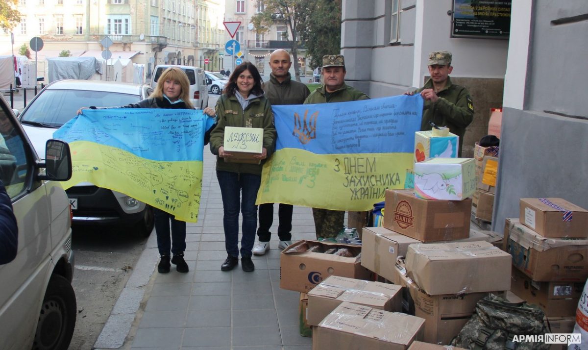 Слід додати, що на фронт відправилось і чимало державних прапорів, які принесли для наших воїнів небайдужі львів’яни. До акції долучилися й учні львівських шкіл № 3 та № 49: вони, окрім волонтерської допомоги, принесли підписані синьо-жовті стяги.