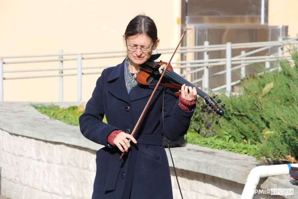Після смачного обіду пацієнтів один за одним працівники закладу виводять на подвір’я, інші на милицях виходять самотужки. Тут на них чекав ще один сюрприз — вже музичний. Як відомо, «скрипка лікує серце, а гітара — душу». Для присутніх відомі українські твори на скрипці виконала пані Лілія, яка часто долучається до проведення концертів для родин загиблих на сході України на Рівненщині, а на гітарі дивувала публіку відома рівненська педагогиня, бард, композиторка та волонтерка, що звикла виступати перед бійцями в АТО та вдома, Тетяна Леус.