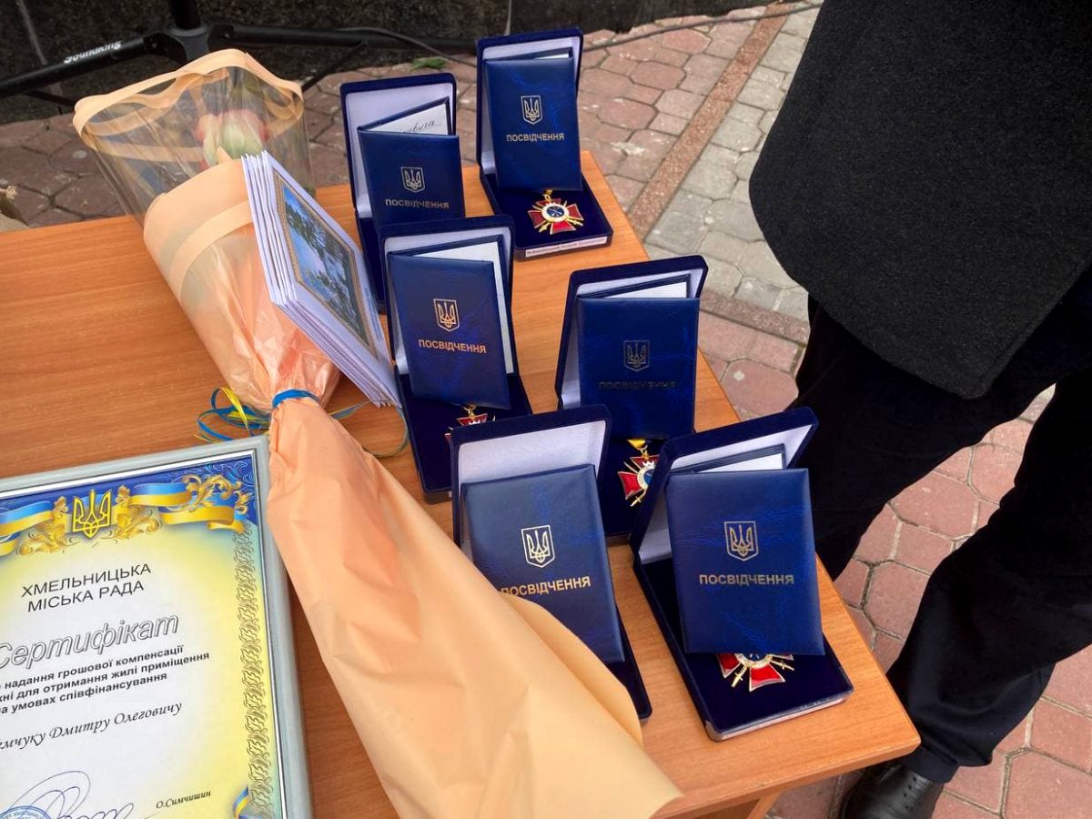 Міський голова Хмельницького Олександр Симчишин відзначив чинних військовослужбовців та ветеранів російсько-української війни. Він нагородив відзнакою «Воля і мужність» сімох хмельничан-захисників і двом вручив грошові сертифікати для придбання житла.
