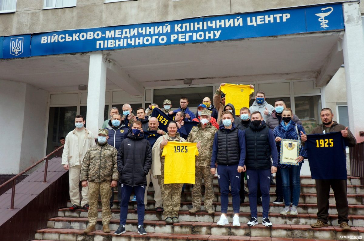 Аби привітати пацієнтів Військово-медичного клінічного центру Північного регіону з Днем захисників та захисниць України до них завітали спортсмени Футбольного клубу «Металіст 1925».