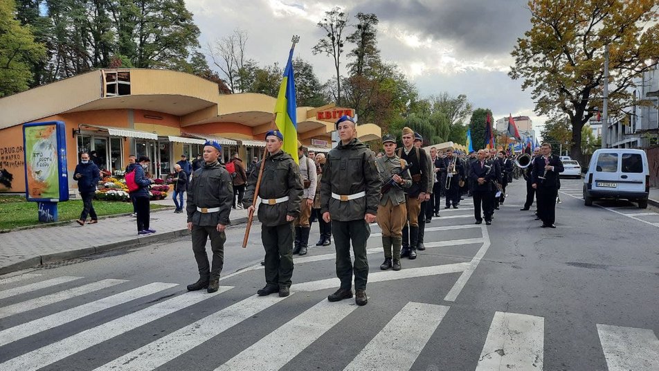 В Івано-Франківську традиційно відбулась урочиста хода, що об’єднала українських патріотів різних поколінь. Люди пройшлися через центральну частину міста, несучи державні прапори, прапори видів ЗС України, портрети визначних борців за долю нації.