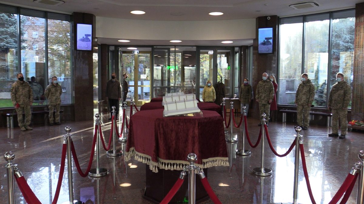 Довідка. Зала пам’яті захисників України створена на вшанування пам’яті військовослужбовців, які загинули за свободу, незалежність і територіальну цілісність України. Її спеціально розташовано таким чином, щоби й військовослужбовці, працівники Міноборони та Генерального штабу, й пересічні громадяни могли зайти до Зали та віддати шану своїм захисникам.