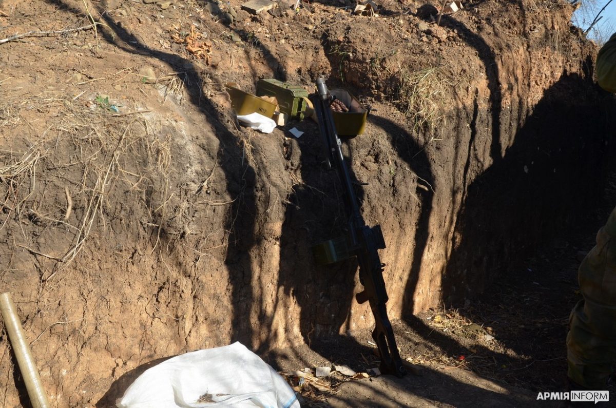 — Ще два, три тижні й «зеленка» остаточно впаде, — розповідає взводний. — Будемо у ворога, як то кажуть, на долоні. Тому намагаємося якнайшвидше завершити роботи з облаштування позицій, бліндажів та укриття. Укріплюємо перекриття, обшиваємо траншеї брусом і дошками, поглиблюємо окопи й ходи сполучень. Це передусім запорука нашої безпеки. Окупанти на нашій ділянці оборони поводяться дуже агресивно. Відстань до їхніх траншей становить від 100 до 500 метрів. Щодня вони намагаються завдати нам шкоди, обстрілюючи позиції з великокаліберних кулеметів, гранатометів, СПГ, ПТУР та АГС. Коли ворог починає нахабніти та створювати небезпеку для життя та здоров’я особового складу, відкриваємо вогонь у відповідь по визначених цілях, змушуючи припинити вогневу активність окупантів.