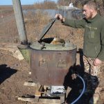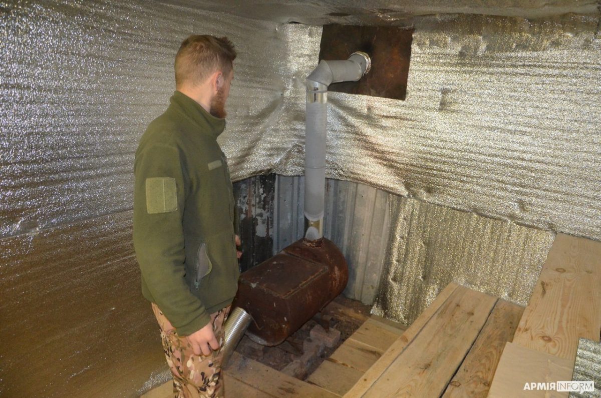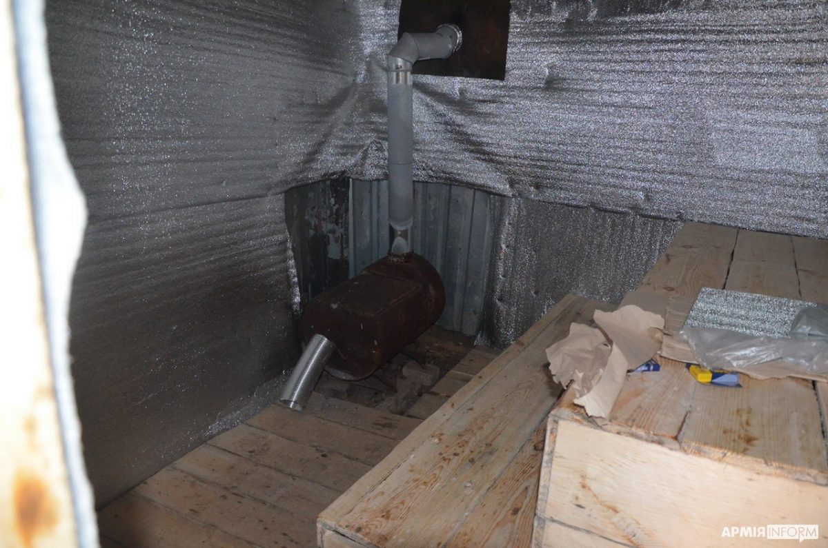 — Ми з хлопцями відновлювали зруйнований під час обстрілів бліндаж. Вирішили зробити з нього справжню лазню, — розповів Володимир. — Зробили з дощок полиці, встановили грубку та обклали її камінням, утеплили стелю й підлогу, обладнали додаткове приміщення під сауну й душову. За допомогою спеціального тенту нагріваємо місткість, розраховану на 90 літрів води. Поруч встановили бочку з холодною водою й завдяки змішувачу подаємо воду у бліндаж-баню. Дуже приємно після чергової три-, чотиригодинної зміни на морозі погрітися в лазні або просто помитися після важкої роботи.