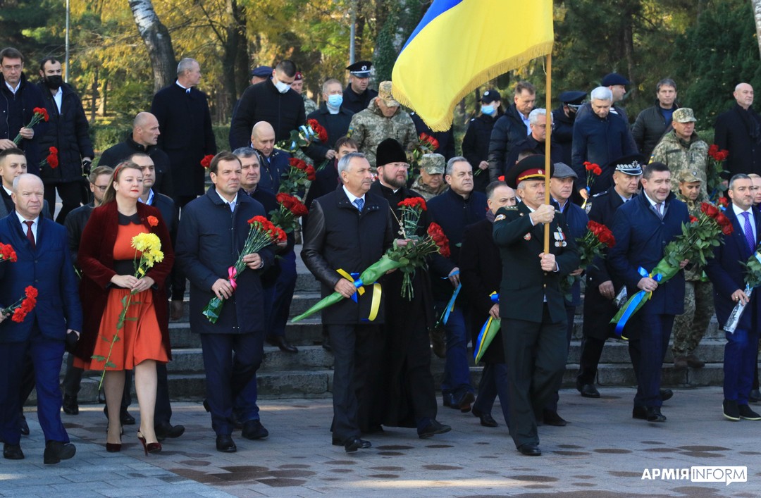 Пам’ять загиблих вшанували хвилиною мовчання, після якої прозвучав військовий салют. Також на честь визволителів і борців за незалежність України взвод Почесної варти командування Повітряних Сил у супроводі військового оркестру пройшов урочистим маршем по Європейській площі.