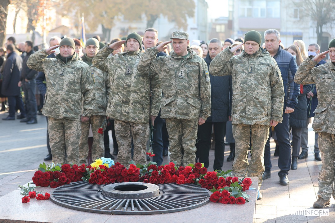 Водночас у Вінниці на Європейській площі відбувся мітинг-реквієм і покладання квітів до Меморіалу Слави. До заходу долучився керівний склад Командування Повітряних Сил ЗС України, представники органів місцевого самоврядування, ветерани, учасники російсько-української війни та громадськість міста.