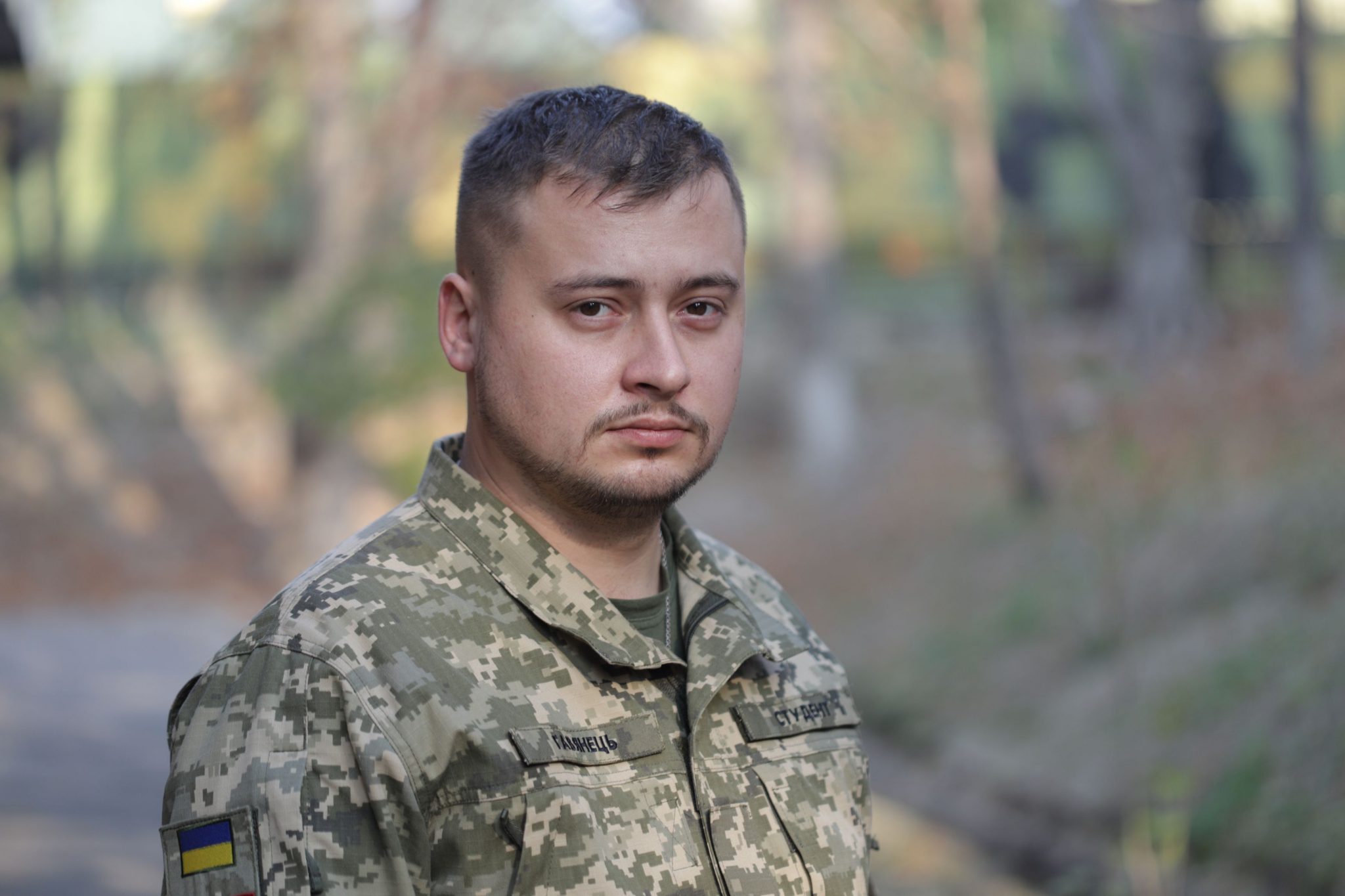 -Я з Тернопільщини. З 2017 до 2019 року служив у військовому комісаріаті… Національний університет оборони України – це найавторитетніший військовий виш у нашій країні. Привабило, що тут за 4 місяці можна отримати офіцерське звання. Очікую, що досвідчені викладачі передадуть знання, як керувати підрозділом, – розповів учасник оборони Донецького аеропорту Ярослав Гавянець.