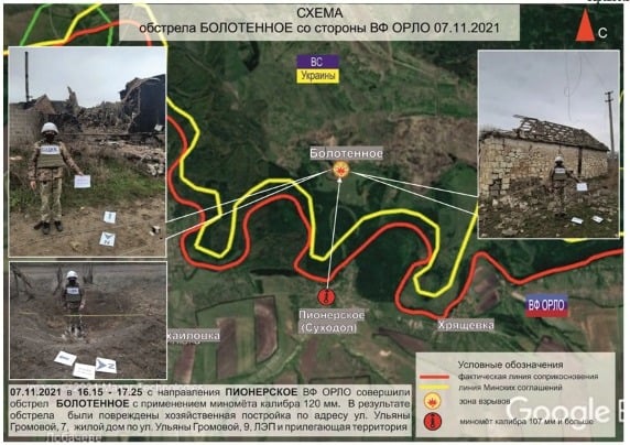 «7 листопада з 16:15 до 17:25 збройні формування Російської Федерації вдруге обстріляли населений пункт, який знаходиться неподалік лінії розмежування в районі проведення операції Об’єднаних сил. Цього разу під обстріл потрапило селище Болотене, Станично-Луганського району, Луганської області», – йдеться в повідомленні.