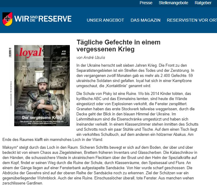«Щоденні битви в забутій війні». Саме такими словами розпочинається матеріал на тему російсько-української війни в найбільшому мілітарному німецькомовному журналі «Loyal».