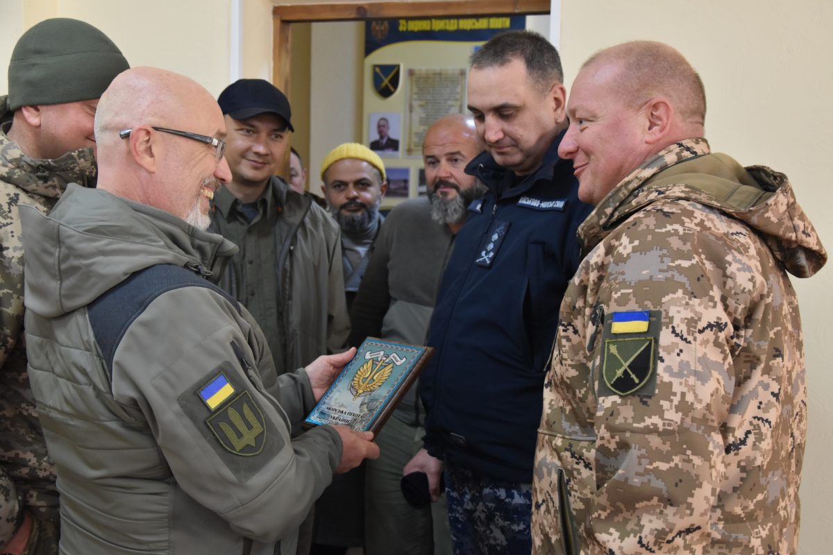 Міністр оборони України Олексій Резніков та Головнокомандувач Збройних Сил України генерал-лейтенант Валерій Залужний в рамках робочої поїздки до Миколаївської області відвідали Командування морської піхоти, 198-й Навчальний центр ВМС, Морський центр ССО та Військово-Морську базу «Намив».