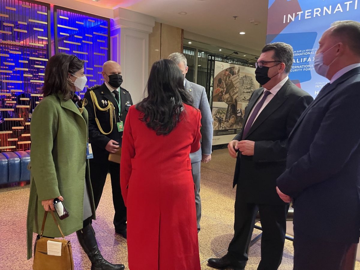 У рамках роботи Форуму Секретар РНБО України Олексій Данілов, заступник Керівника Офісу Президента України Роман Машовець та заступник Міністра оборони України Анатолій Петренко обговорили безпекову ситуацію навколо українських кордонів із Міністеркою національної оборони Канади Анітою Ананд.