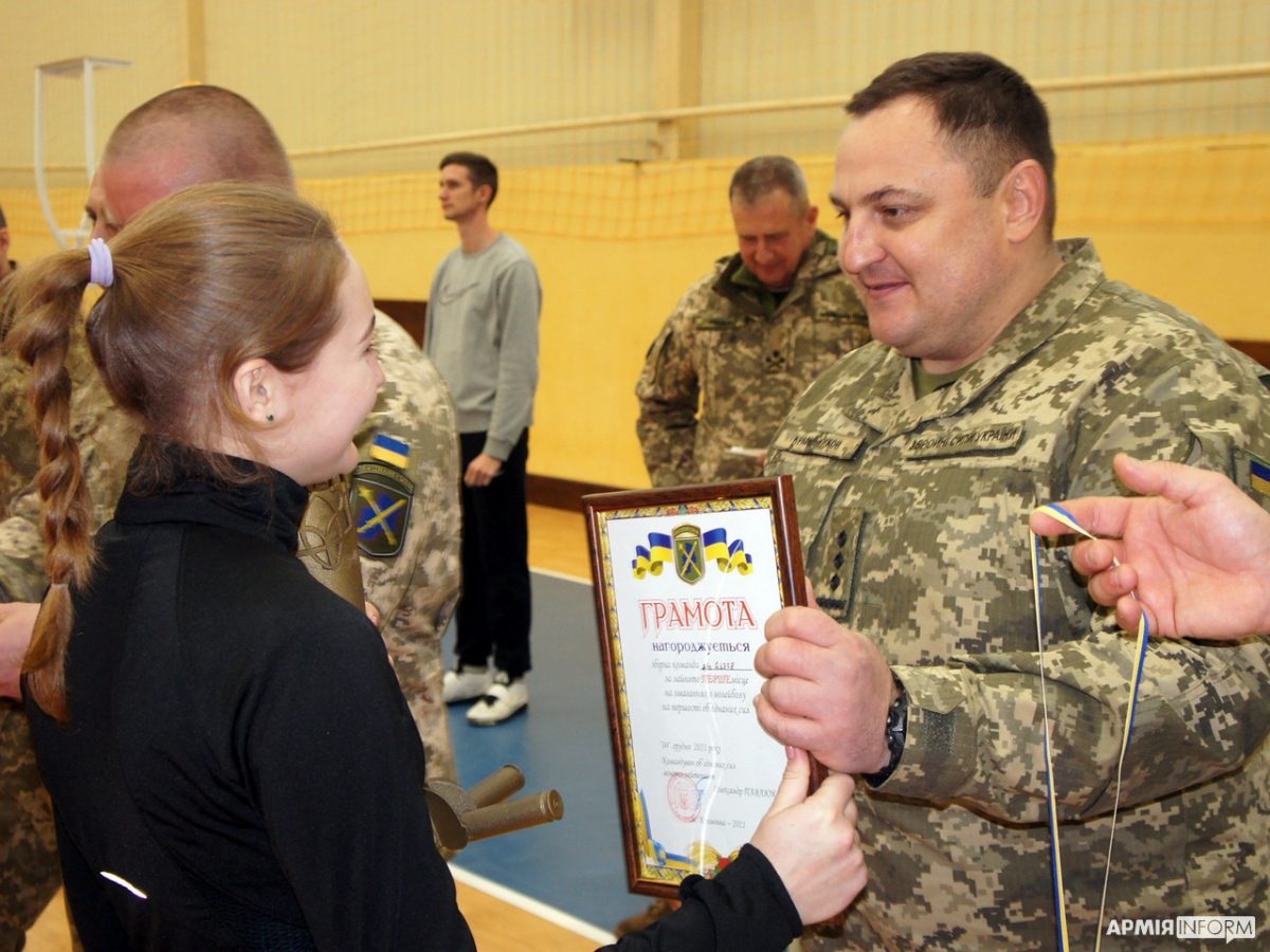 Також, за клопотанням суддів та вболівальників, окрему нагороду – почесну грамоту та цінний подарунок – отримала капітан команди-переможця старший солдат Лілія Мокренко.