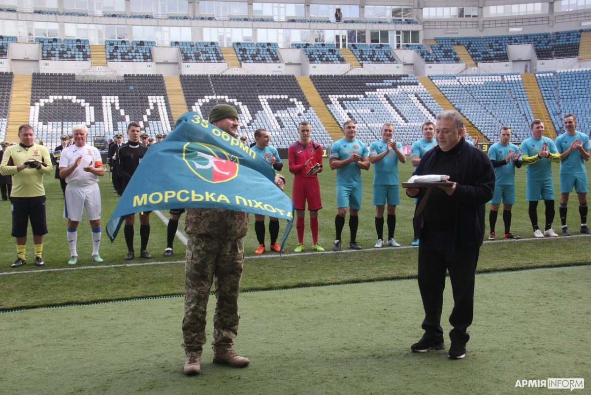 Одеса, де зародились традиції як українського футболу, так і морської піхоти України, стала місцем проведення унікального футбольного поєдинку. З нагоди 30-ї річниці Збройних Сил України тут, на центральному стадіоні, у протистоянні зійшлись збірні команди 35-ї окремої бригади морської піхоти імені контр-адмірала Михайла Остроградського та ветеранів футбольного клубу «Чорноморець».