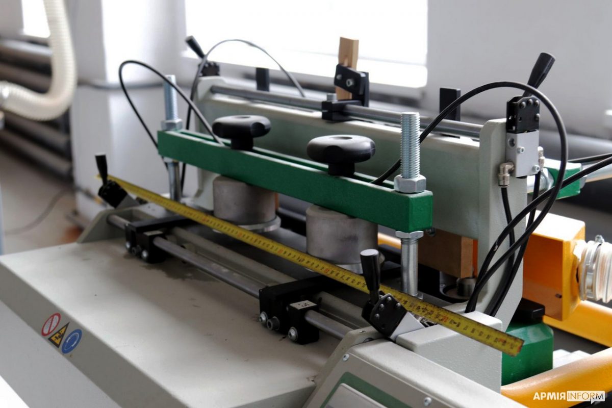 — Основне призначення цього цеху полягає у виробництві тари для зберігання боєприпасів, разом з цим спроможності дозволяють виробляти інші деревообробні конструкції для потреб військової частини. Нещодавно ми виготовили піддони, можемо робити рейки, ворота на сховища. Словом, у чому буде необхідність у частині, все вироблятимемо «під ключ», — розповів начальник деревообробного цеху майор Олег Нех.