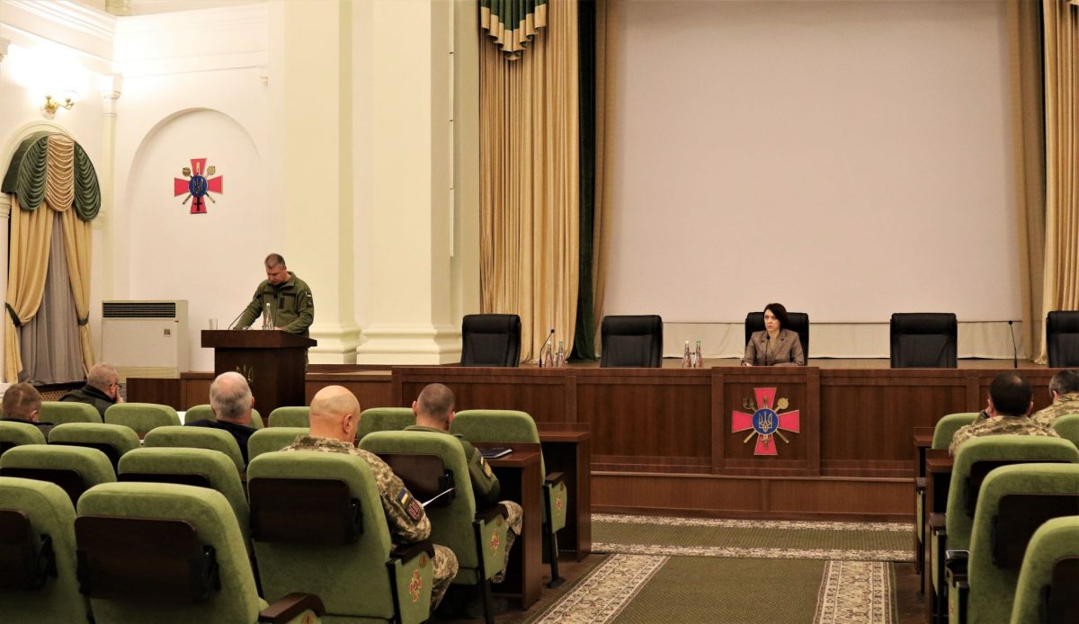 Заступниця Міністра відзначила, що наразі практики й науковці продуктивно взаємодіють у правовому напрямку оборонної діяльності та подякувала робочій групі за проведення правового аналізу законодавчих актів на предмет прогалин, застарілих і дублюючих норм, а також висловлену позицію щодо своєчасності та доцільності вдосконалення норм профільного законодавства.