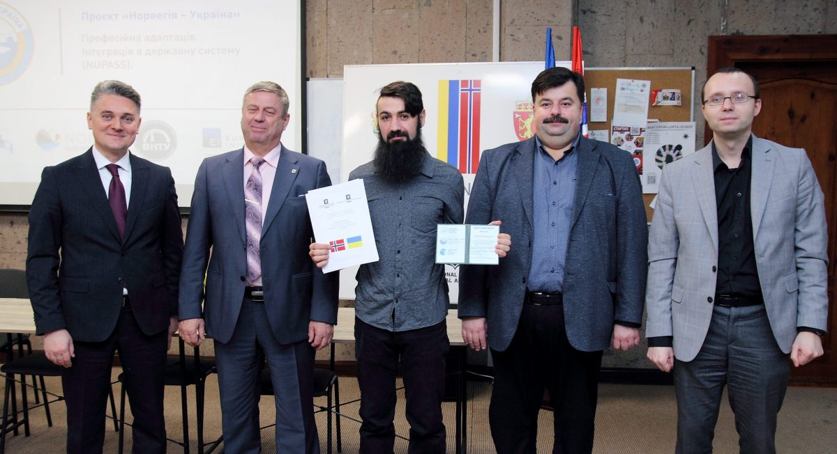 У Вінницькому національному технічному університеті відбувся випуск слухачів, які пройшли безоплатне тримісячне навчання на курсі «Підприємництво та інформаційні технології в бізнесі». 30 ветеранів, військовослужбовців і членів їхніх родин отримали свідоцтво про профпідготовку державного зразка (від ЗВО України), спільний сертифікат університету NORD і українського навчального закладу, спільний диплом МЗС та Міноборони Норвегії.