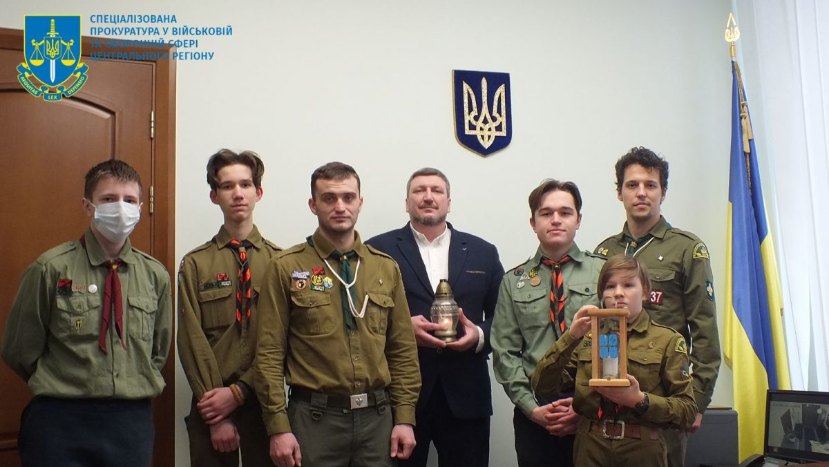 Із рук у руки представники Київського осередку національної скаутської організації «Пласт» передали вогонь із Вифлеєму керівнику спецпрокуратури регіону Андрію Шошурі.
