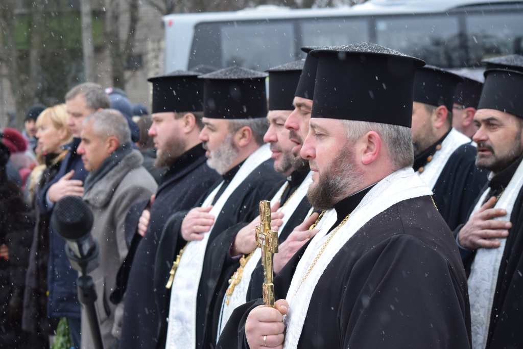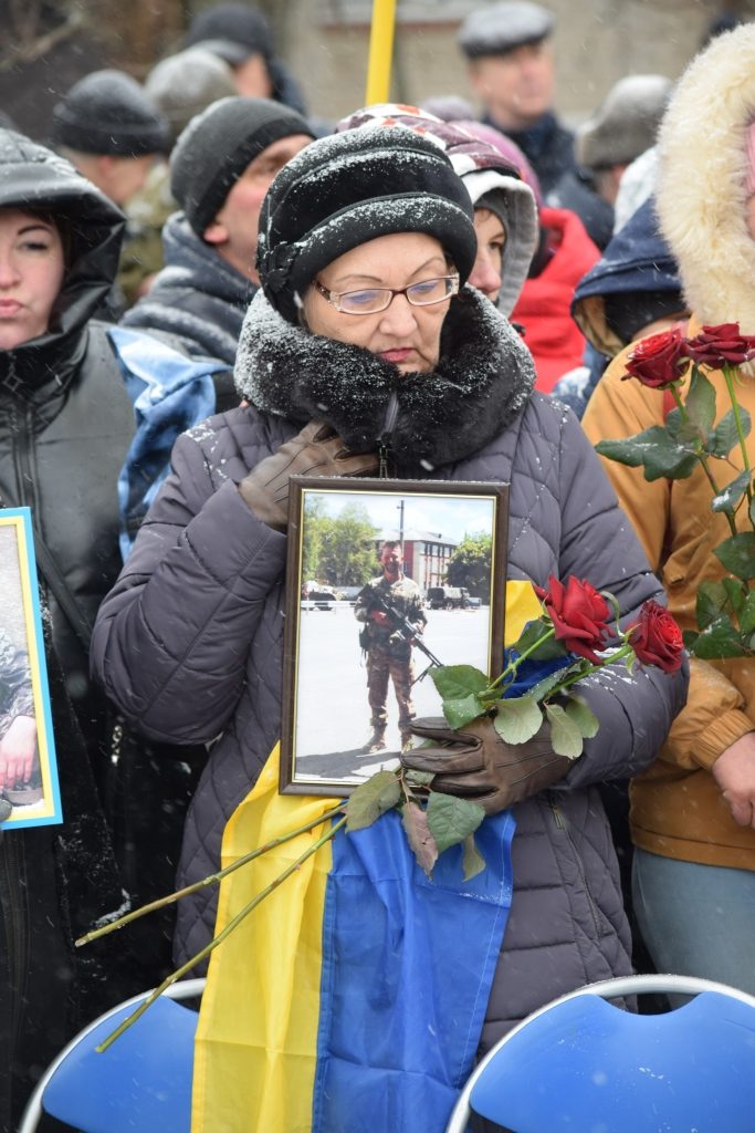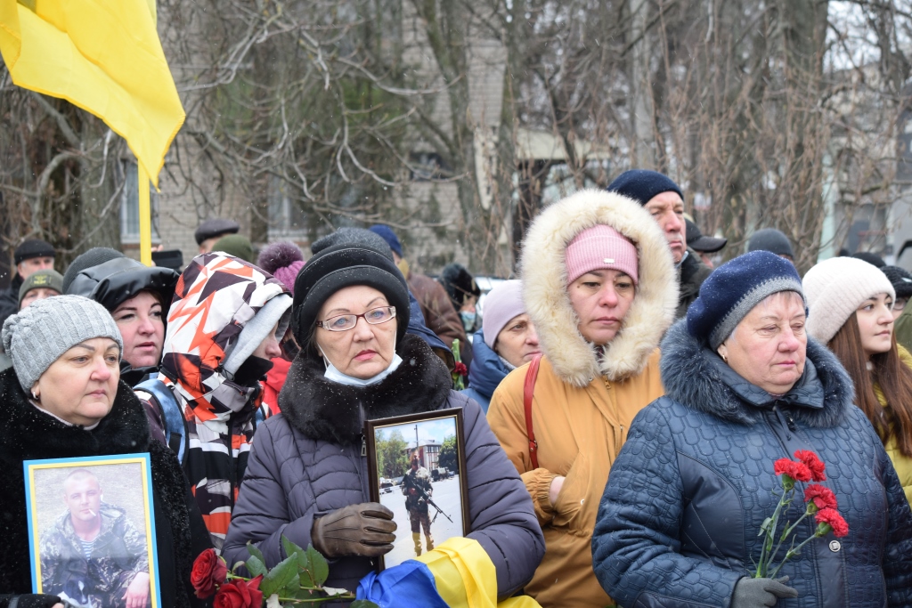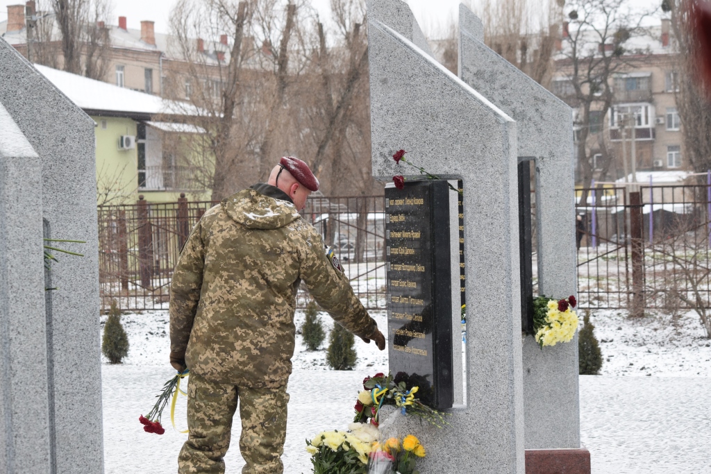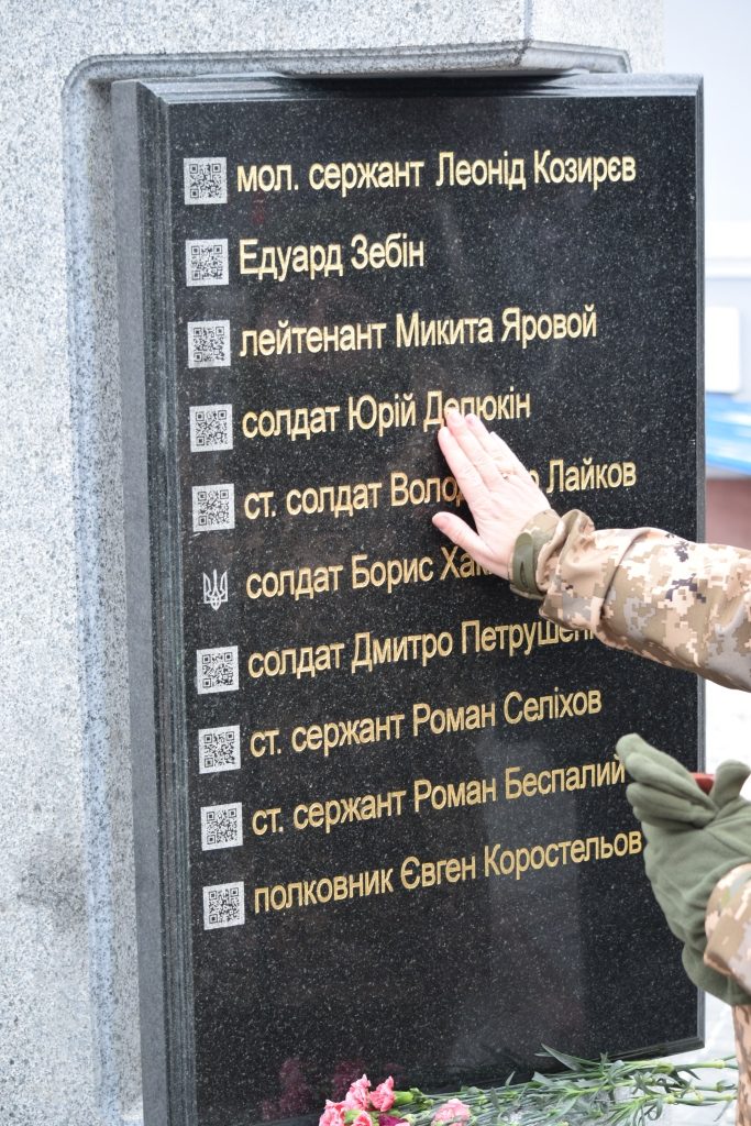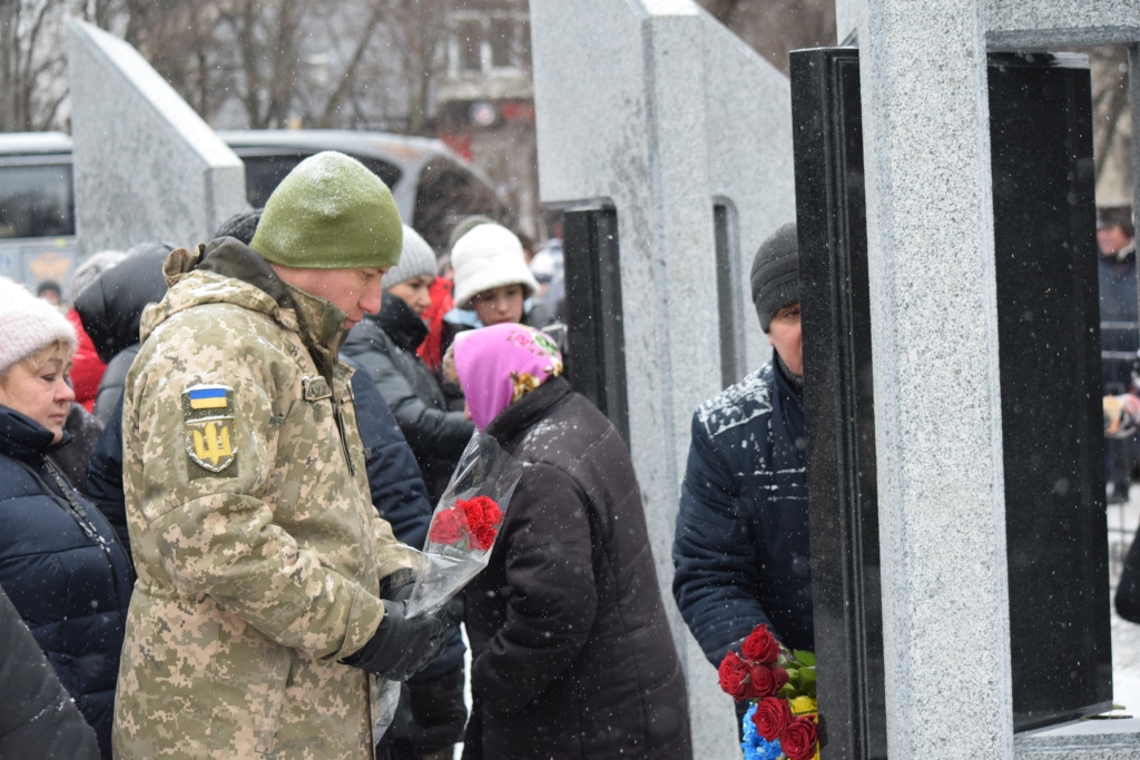 Рідні, побратими, небайдужі громадяни вшанували захисників хвилиною мовчання та поклали квіти до плит меморіалу, що віднині увіковічує пам’ять нескорених синів України.
