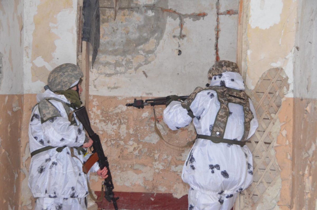 На полігоні військовослужбовці окремої механізованої бригади імені кошового отамана Івана Сірка продовжують вдосконалювати бойові навички із застосуванням системи LaserTag. Цього разу піхотинці відпрацьовують бій в урбанізованій місцевості.