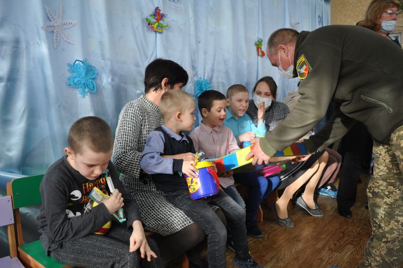 Офіцери групи цивільно-військового співробітництва подарували дітям іграшки, цукерки та передали теплі привітання від своїх бойових побратимів.