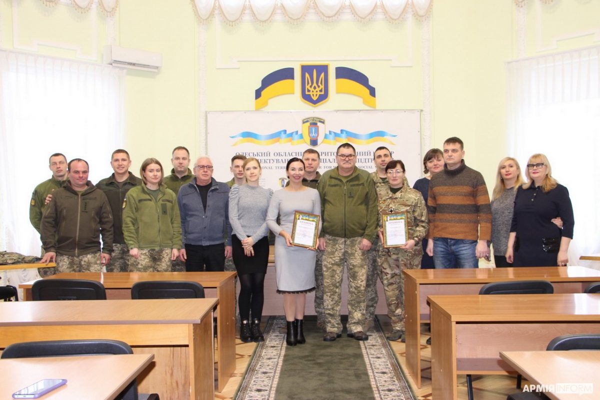 Напередодні свята в Одеському обласному територіальному центрі комплектування та соціальної підтримки нагородили грамотами єдину в Одесі жінку-капелана Олену Жевець та лідерку руху «За рівні права та можливості в Одеській області» Катерину Чегаринську.