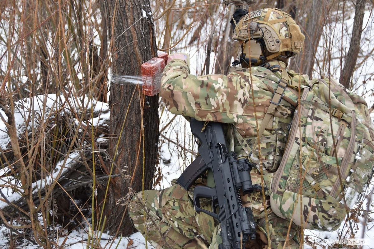 Крім того, одна з груп спеціального призначення відпрацювала тактичне завдання з дорозвідки маршруту висування групи в умовний тил противника та розчищення підривним способом проходів у лісових завалах. Використовували при цьому кілограмові заряди тротилу, які підривали електричним способом.