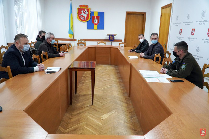 У Володимир-Волинській міській раді керівники державних органів управління провели робочу зустріч із виконувачем обов’язків командира окремого батальйону територіальної оборони Андрієм Селецьким.
