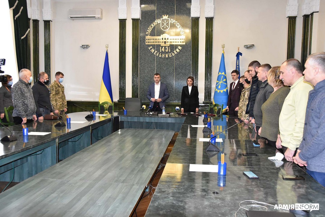 Звертаючись до військовослужбовців, представників громадських патріотичних організацій, ветеранів АТО/ООС, він подякував військовим за захист України, за героїзм і звитягу. Зокрема, наголосив, що ордери на житло — це частинка шани, вдячності та поваги до мешканців міста за захист від ворога. За шість крайніх років майже 230 сімей загиблих героїв, поранених захисників та тих, хто став інвалідом під час виконання бойових завдань у боротьбі за Україну, отримали у Хмельницькому власні помешкання.
