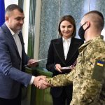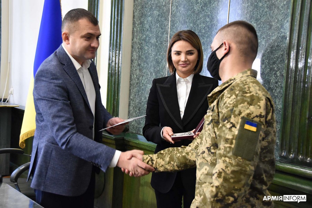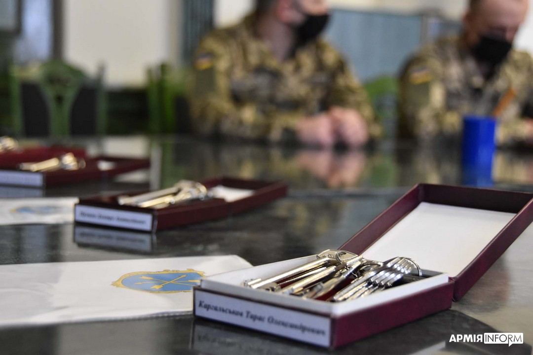 Сьогодні, 9 лютого, у зеленій залі Хмельницької міськради міський голова Олександр Симчишин та голова Хмельницької обласної ради Віолета Лабазюк вручили 4 ордери та ключі від квартир трьом діючим військовослужбовцям та одному ветерану російсько-української війни.
