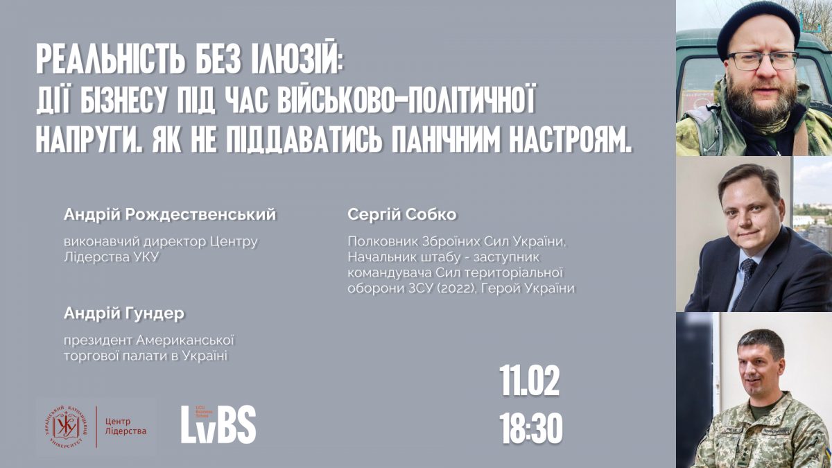Сьогодні, 11 лютого, о 18:30 відбудеться онлайн-вебінар «Реальність без ілюзій: дії бізнесу під час військово-політичної напруги. Як не піддаватися панічним настроям».