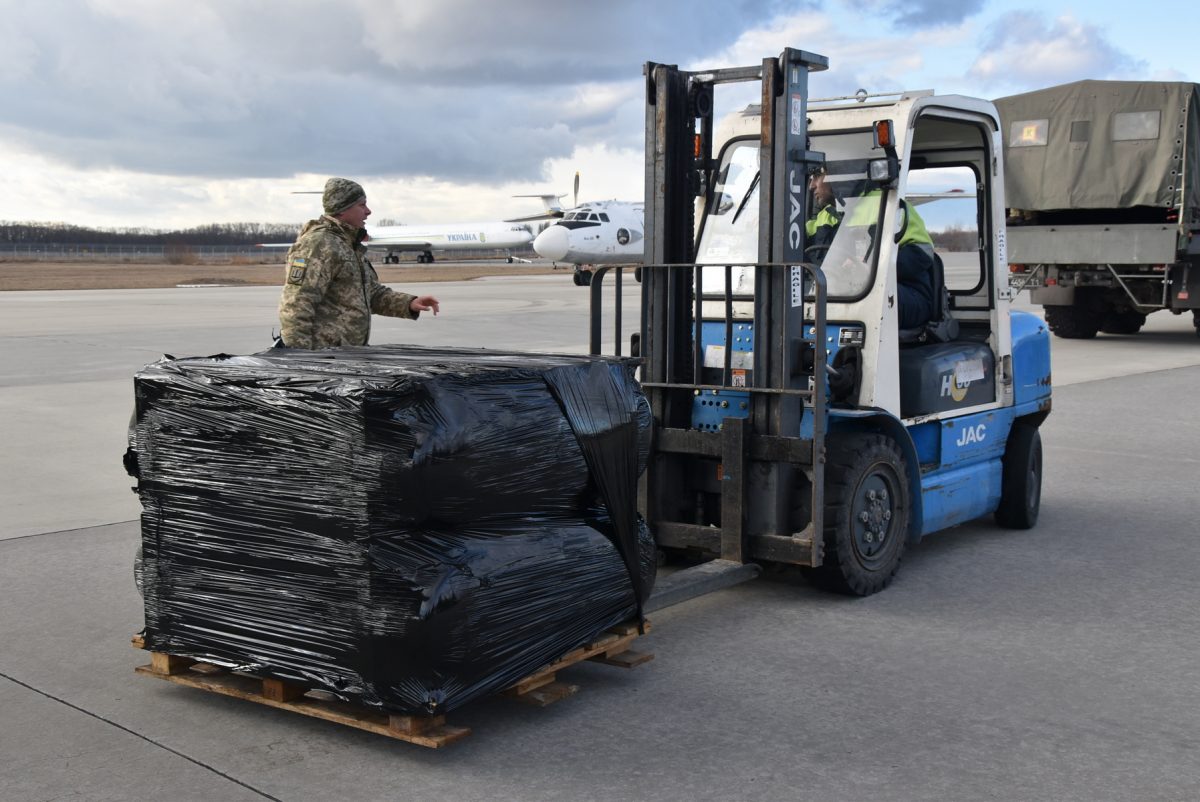 Сьогодні, 18 лютого, у Міжнародному аеропорту «Бориспіль» приземлився літак із черговою партією військово-технічної допомоги, цього разу від Естонської Республіки.