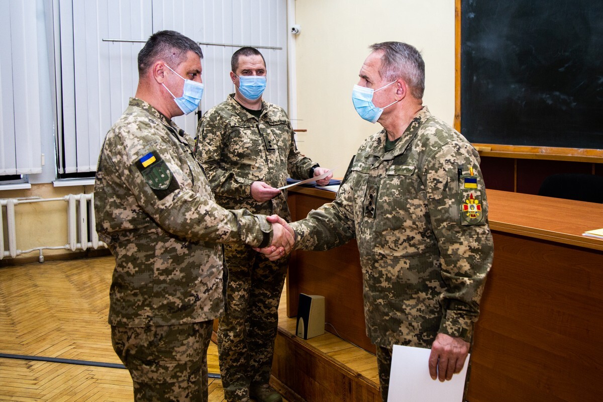 Вручили свідоцтва про підвищення кваліфікації та привітали слухачів з успішним завершенням курсової підготовки начальник інституту державного військового управління генерал-майор Олександр Дузь-Крятченко та заступник начальника штабу Командування Сил територіальної оборони Збройних Сил України полковник Олег Рибалко.