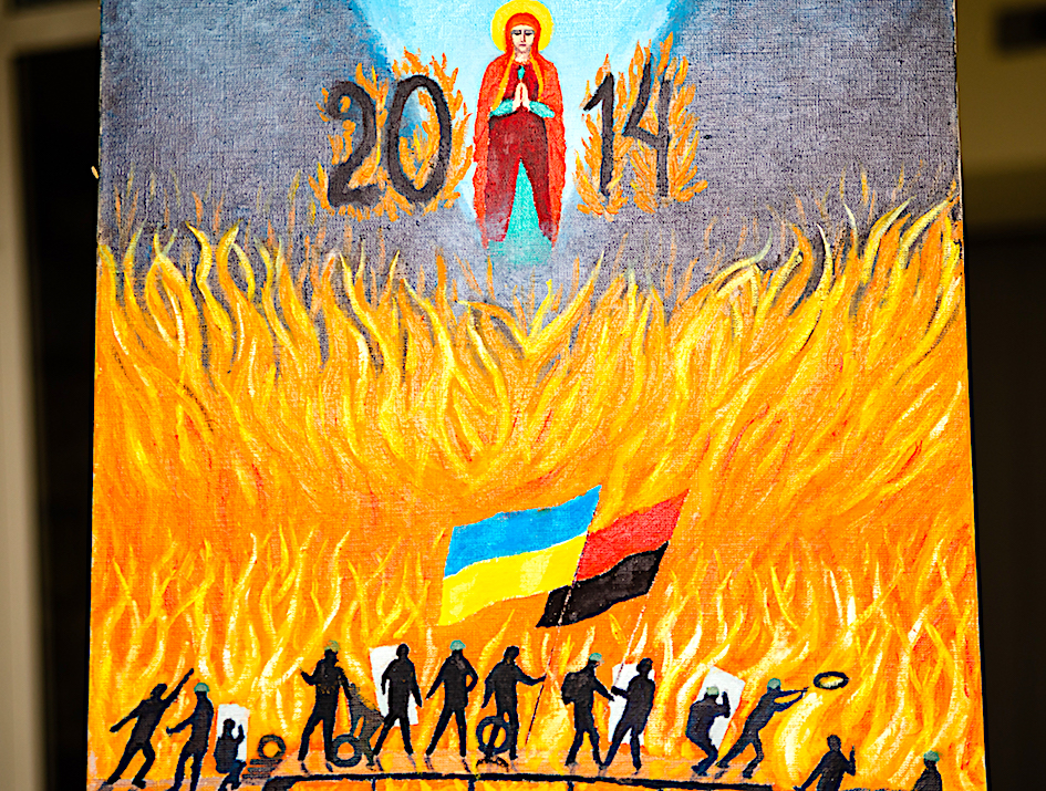 Окрім світлин, тут також представлені дві картини, які створив художник Станіслав Брунс. Перша присвячена загиблому на Майдані Герою України Сергію Нігояну. Друга — подіям, які митець у ті дні бачив на власні очі.