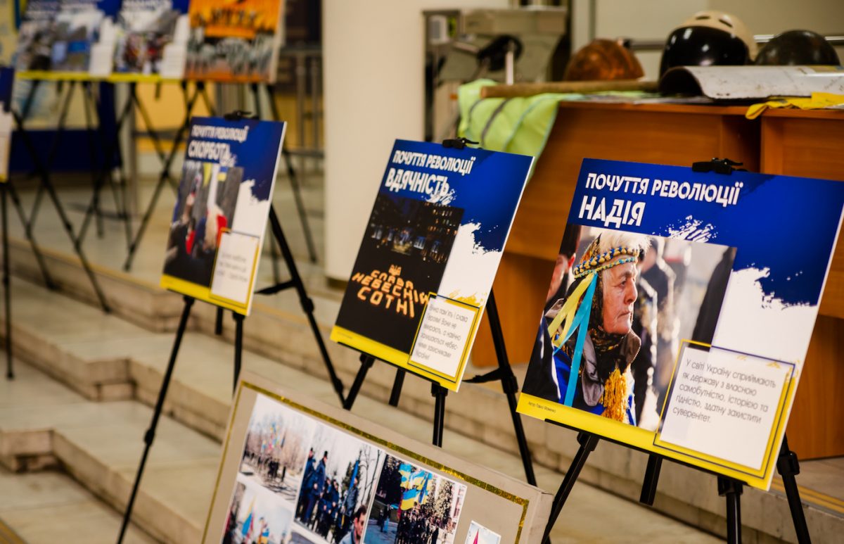 На виставці представлені професійні й аматорські світлини з Майдану, картини та особисті речі протестувальників. Як зазначив під час презентації експозиції начальник відділу Українського інституту національної пам’яті доктор історичних наук Ігор Кочергін, Революція Гідності — це надважливий етап нашого національного державного будівництва.