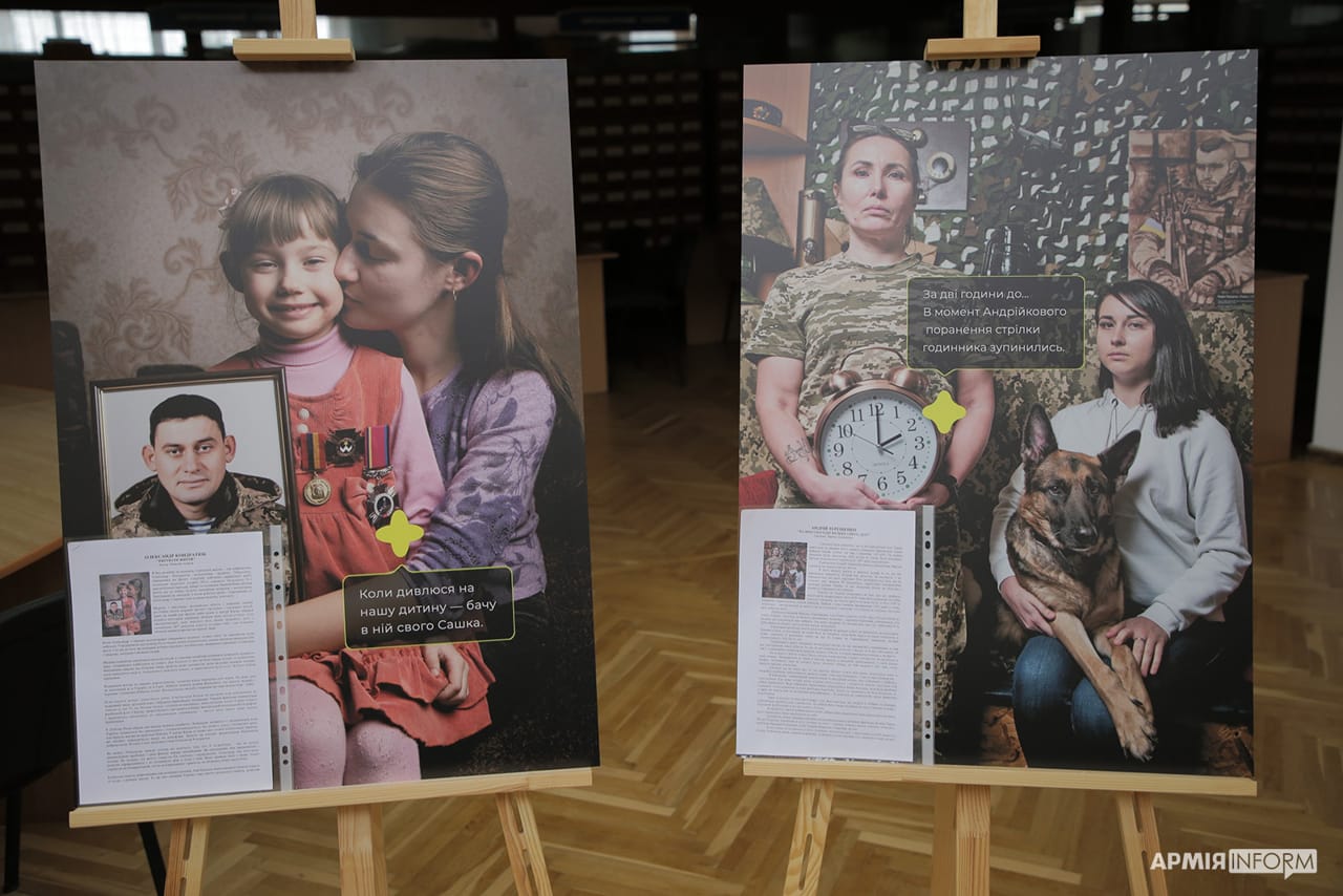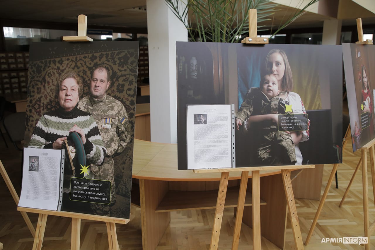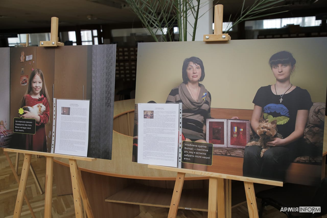 Експозиція налічує 13 виставкових фотостендів, де через призму авторських фотографій українські родини розповідають історії своїх близьких — українських військових, які загинули під час агресії Росії на сході України.