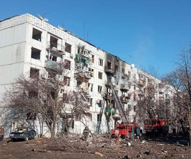 24 лютого о 08:23 на номер «101» надійшло повідомлення про пожежу у житловому 5-поверховому будинку за адресою: м. Чугуїв, мікрорайон Авіатор, буд. №157. Вона виникла внаслідок ворожого обстрілу.