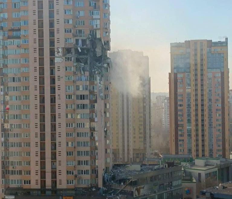Сьогодні, 26 лютого, до ДСНС надійшла інформація, що по проспекту Лобановського, 6А сталося попадання снаряду від російських вбивць дітей і мирного населення в багатоповерховий житловий будинок (17-18 поверх).