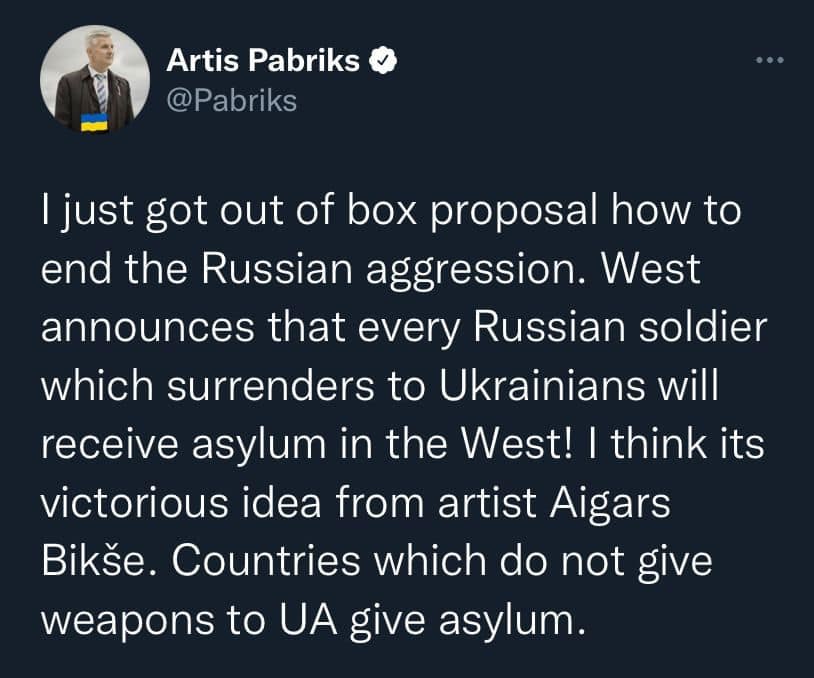 Про це повідомив Міністр оборони Латвії, депутат Європейського парламенту Артіс Пабрікс.