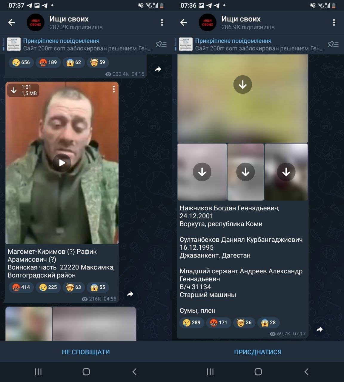 Небайдужі громадяни створили Телеграм-канал «Ищи своих» для пошуку вбитих та полонених в Україні російських військових.