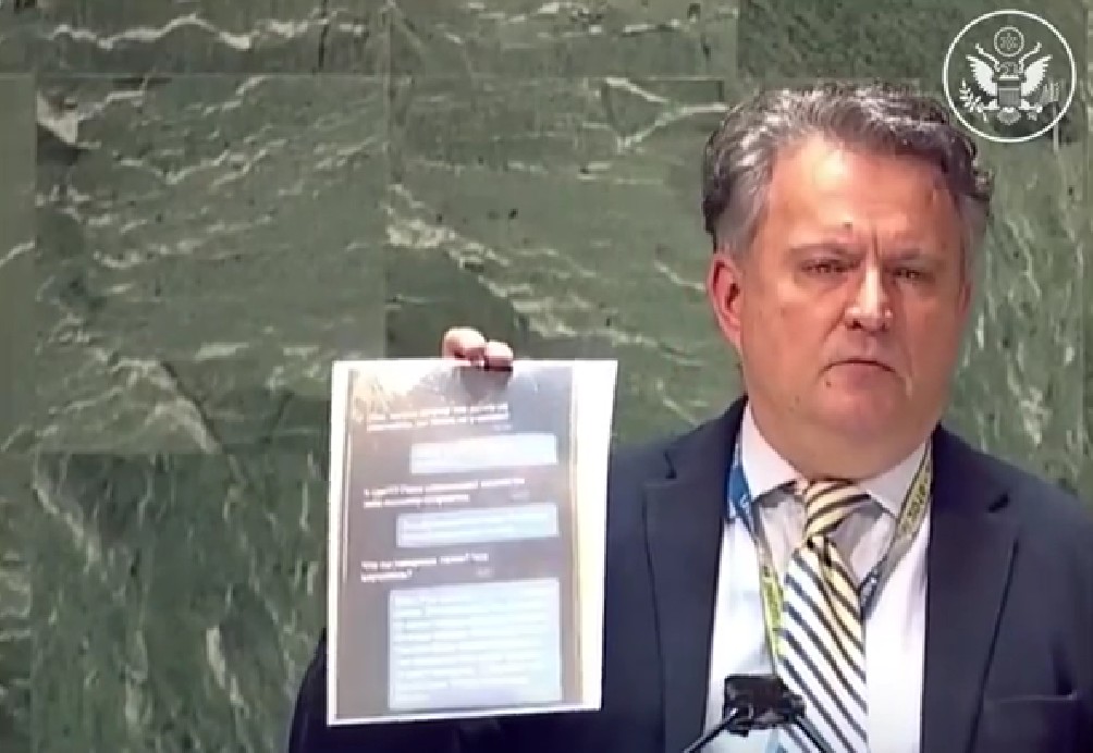 Постійний представник України при ООН Сергій Кислиця зачитав під час свого виступу скріншот повідомлення зі смартфону вбитого російського солдата: