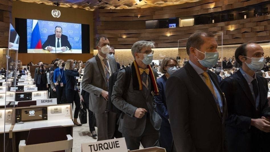 Коли на засіданні почав виступати глава МЗС країни-окупанта РФ Сергій Лавров, дипломати десятків країн покинули залу Ради ООН.