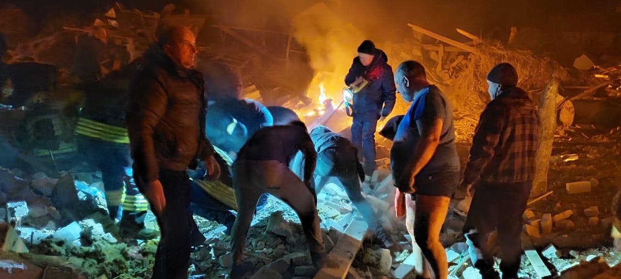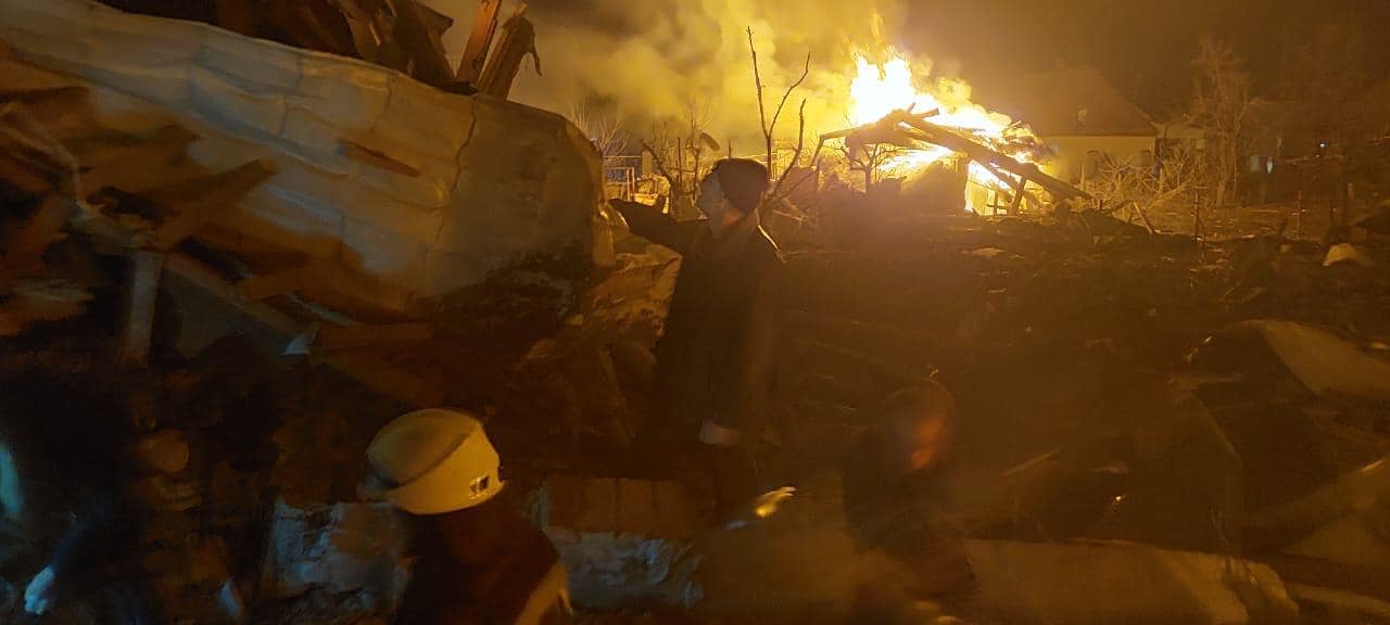 Попередньо загинуло дві особи, травмовано три. В завалах пошкоджених приватних житлових будинках ймовірно перебувають люди.