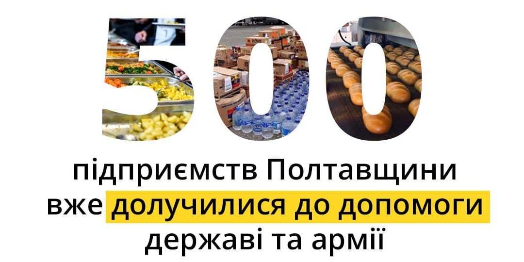 Понад 500 підприємств Полтавщини вже долучилися до збору гуманітарних вантажів у сусідні області, забезпечення підрозділів Тероборони та поселення біженців. Щогодини кількість охочих допомогти зростає.