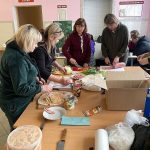 Готують і вареники, і зрази, і салати. Все свіже, гаряче. Продуктами здебільшого допомагають місцеві: від картоплі з буряком до свіжої риби та м’яса, з якого варять тушонку. Вона поїде нашим воїнам в інший кінець країни. Працюють кухарі цілодобово.